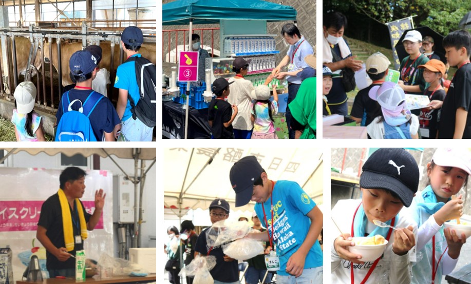 低温殺菌や高温殺菌牛乳、低脂肪乳の飲み比べや牛舎の見学、牛乳クイズなど、楽しく牛乳について学んだあとは、四酪さんの牛乳を使ったアイスクリームを作りました!