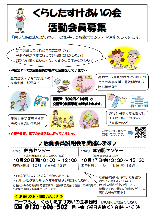 くらしたすけあいの会 活動会員募集 鈴鹿センター