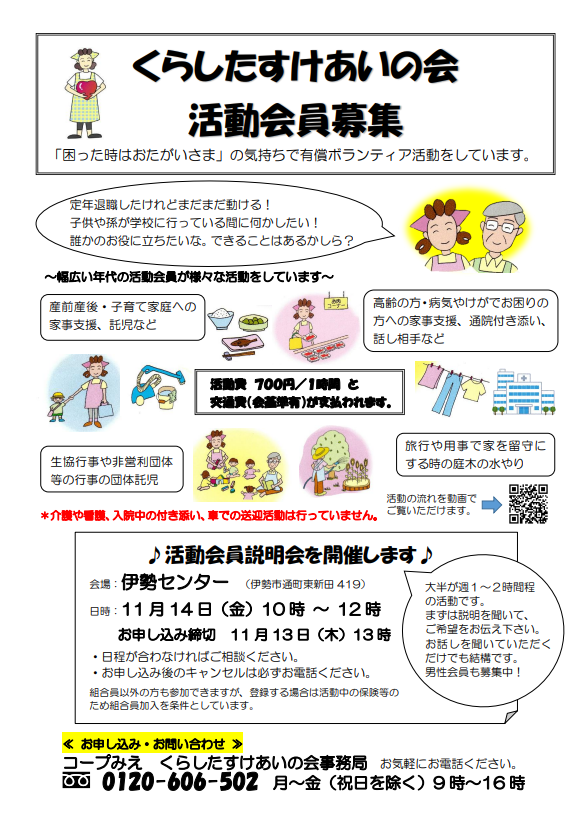 くらしたすけあいの会 活動会員募集 伊勢センター