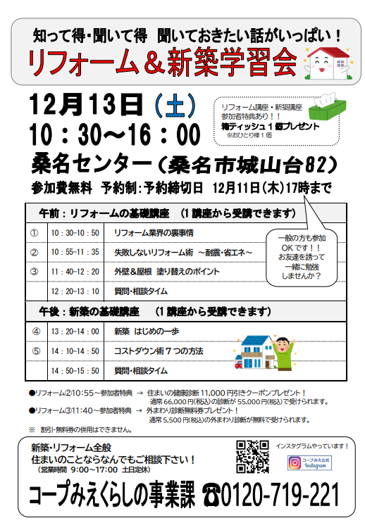 午前:リフォーム② 10:55~ 住まいの健康診断11,000円引きクーポンプレゼント