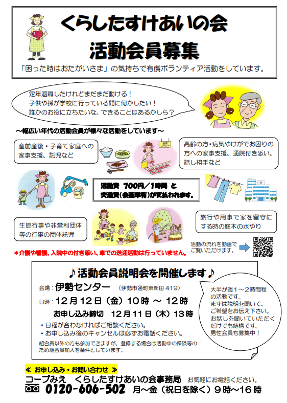 くらしたすけあいの会 活動会員募集 伊勢センター