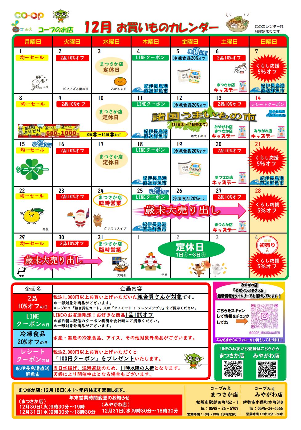 12月7日(日)・21日(日)・28(日)「くらし応援 全品5%オフ」!