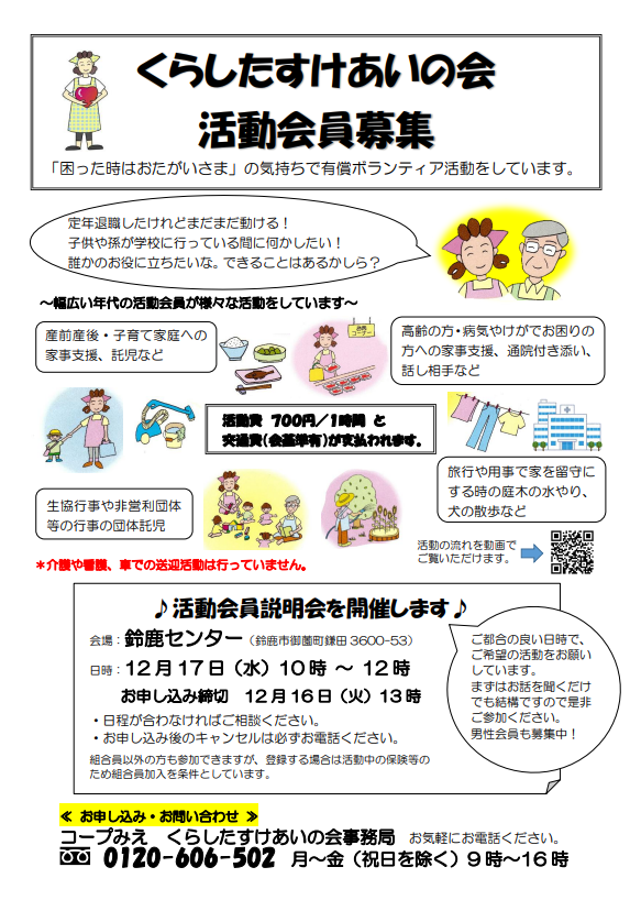 くらしたすけあいの会 活動会員募集 鈴鹿センター