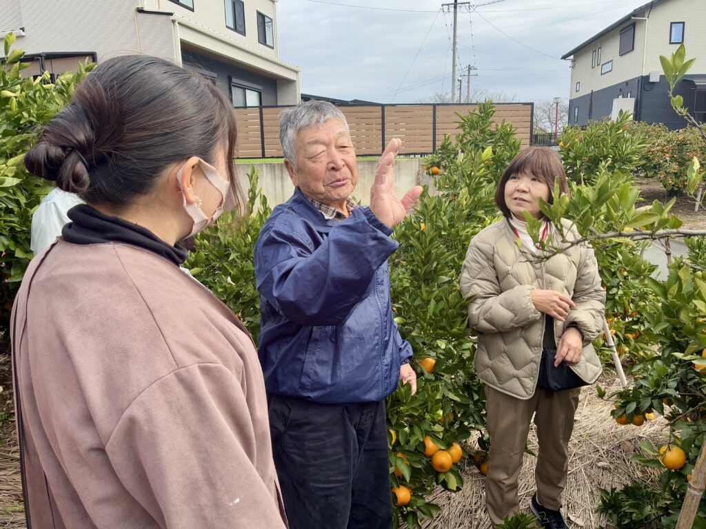 交流会では、生産者から直接、美味しいみかんの選び方を学びました。