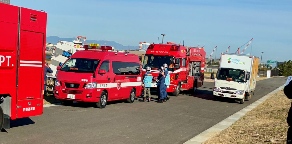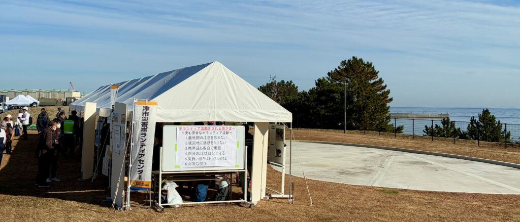 11月23日(日)、津市香良洲高台防災公園を会場に大規模災害発生時における円滑な対応と地域防災力の強化に貢献するため、令和7年度津市総合防災訓練に参加しました。