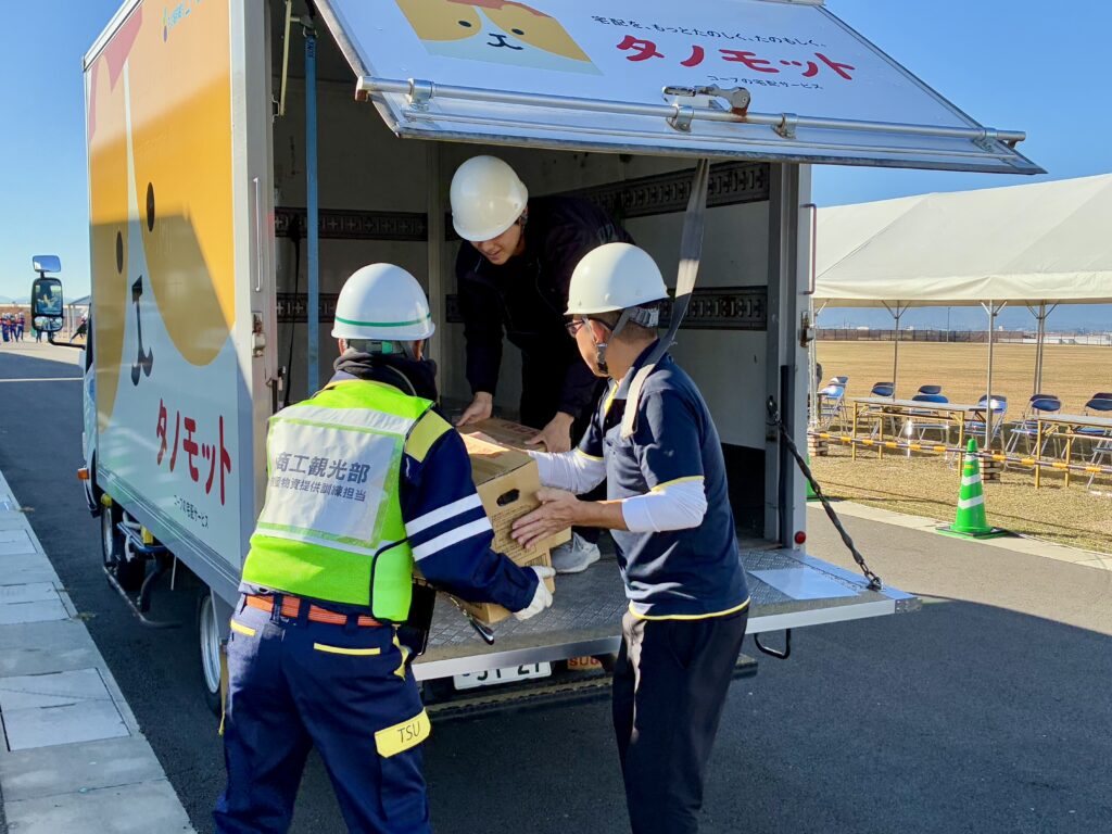 想定される被災地からの物資要請に対し、コープみえ宅配(タノモット)トラックを用いて、要請のあった救援物資である水(2リットル6ケース)を迅速に訓練会場へ輸送しました。現地では、物資の数量確認と、津市担当者への確実な引き渡しを行い、災害発生時の一連の救援物資供給プロセスを確認しました。