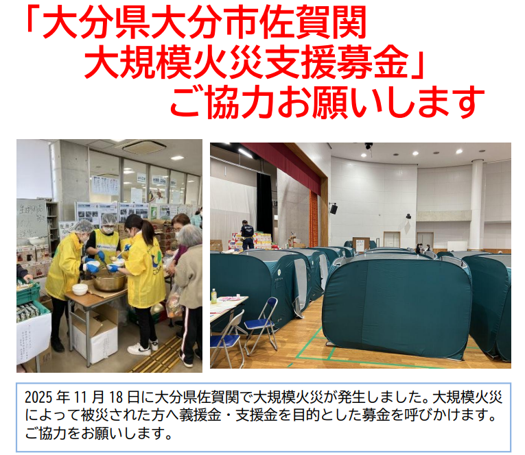 ※お寄せいただいた募金は、主に「義援金」として大分県、または大分市にお渡しする予定です。