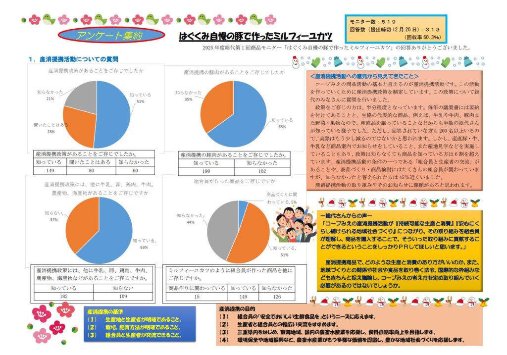 アンケート集約 はぐくみ自慢の豚でつくったミルフィーユカツ