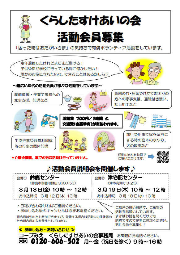 くらしたすけあいの会 活動会員募集 鈴鹿センター