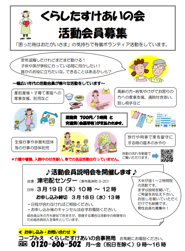 くらしたすけあいの会 活動会員募集 津宅配センター