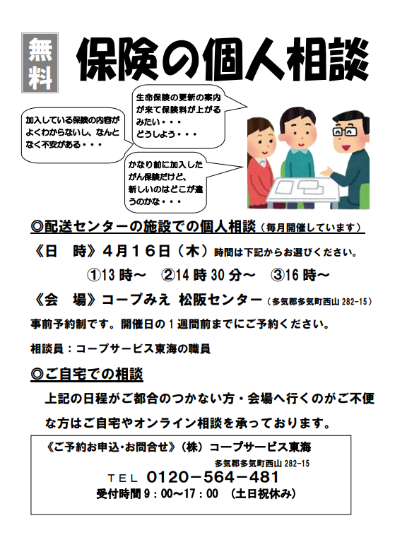 ◎配送センターの施設での個人相談(毎月開催しています!)