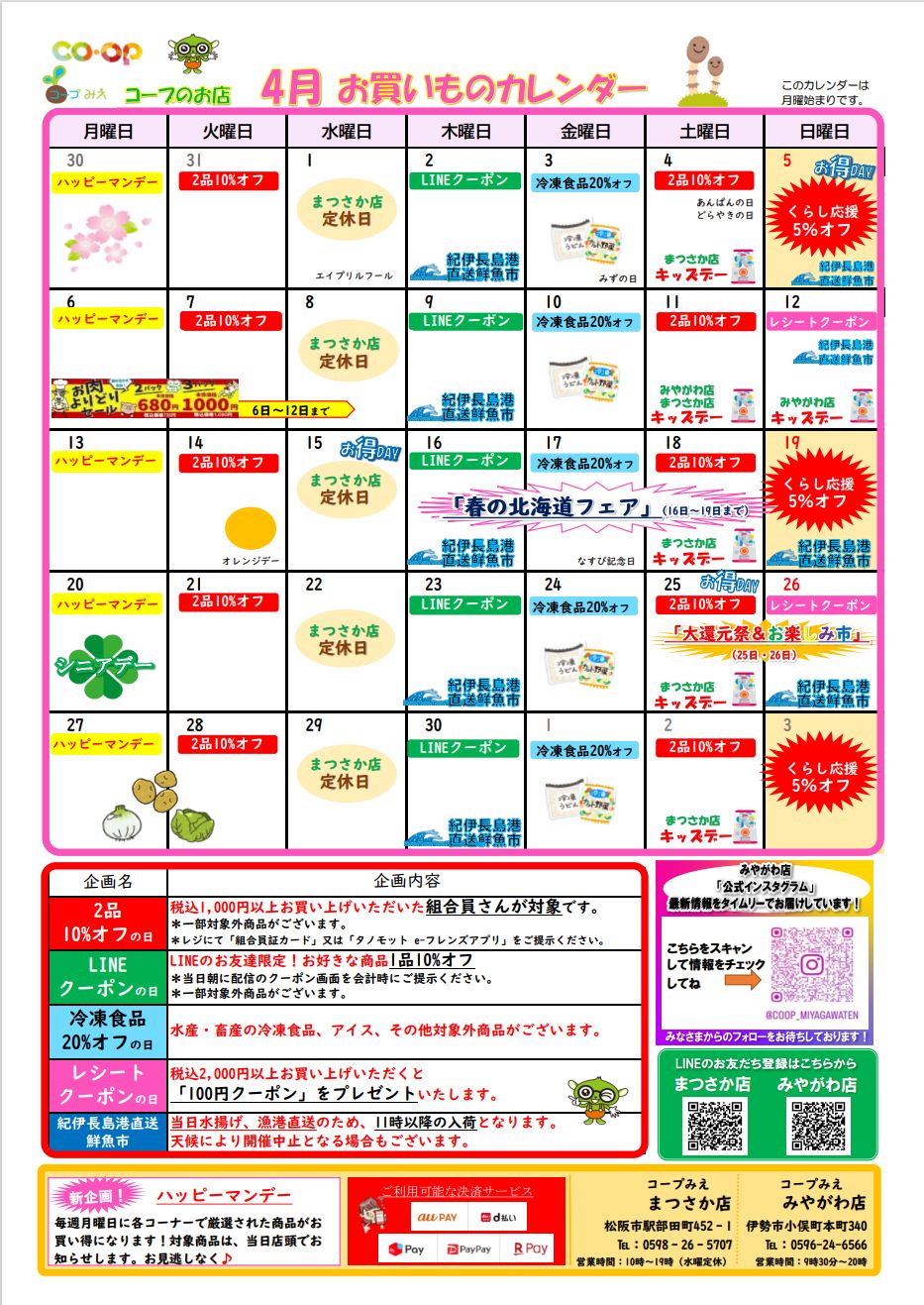 4月お買い物カレンダー