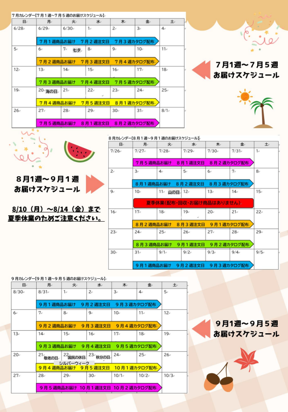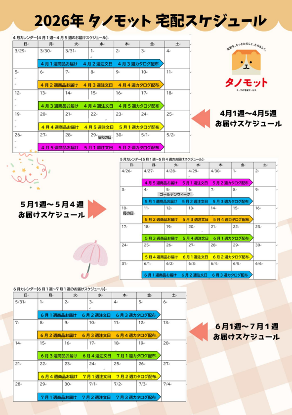 2026年タノモット宅配スケジュール(上期)