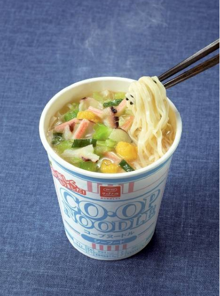 コープヌードル定番のシーフード味です。環境に配慮し、容器には紙カップを使用しています。持続可能なパーム油の生産貢献しています。