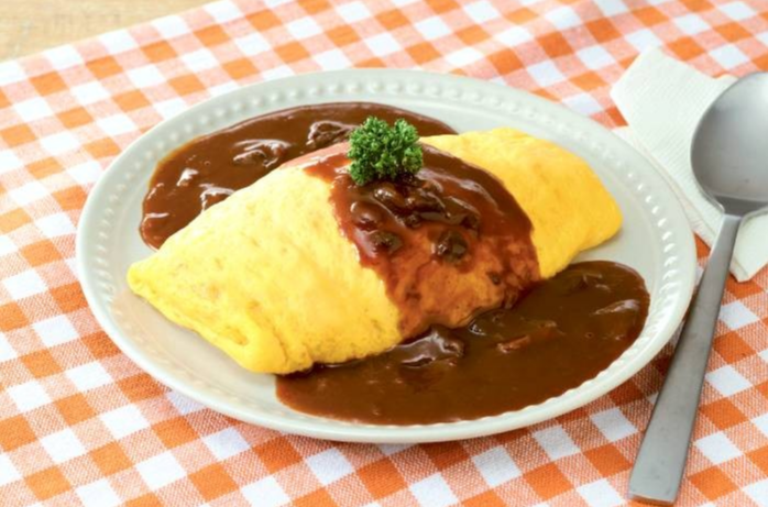 ふっくら焼き上げた卵シートでチキンライスを包みました。チキンライスは国産のたまねぎ、鶏肉、にんじんの具材入りです。