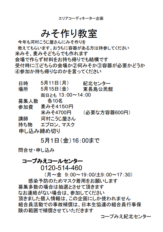 みそ作り教室 紀北センター