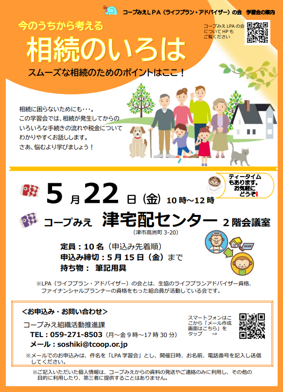 ※LPA(ライフプラン・アドバイザー)の会とは、生協のライフプランアドバイザー資格、ファイナンシャルプランナーの資格をもった組合員が活動している会です。