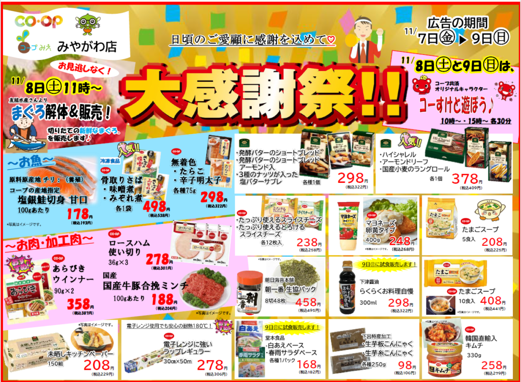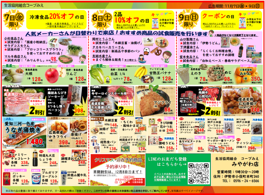 - ◎お店のご利用には「組合員証」をレジでご提示ください。e-フレンズからも組合員証表示ができます。