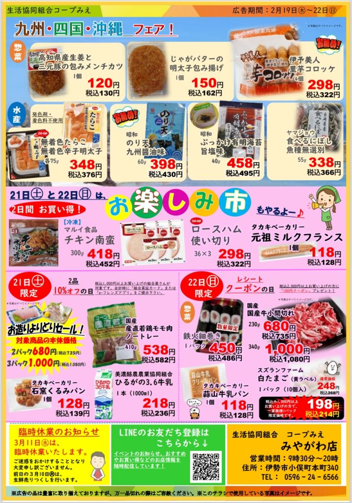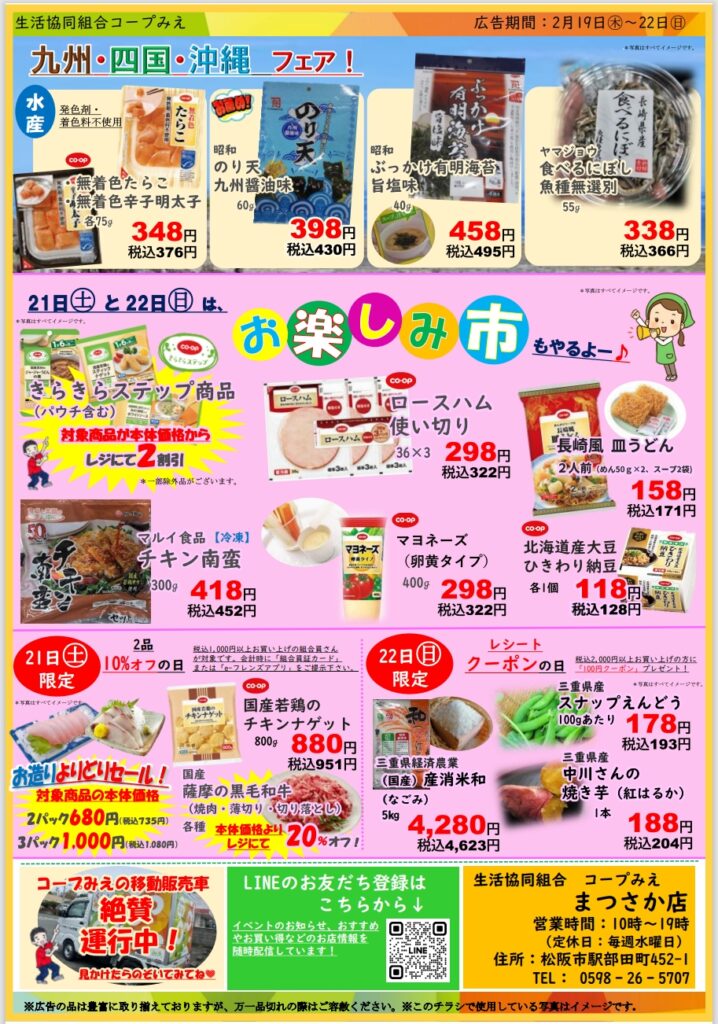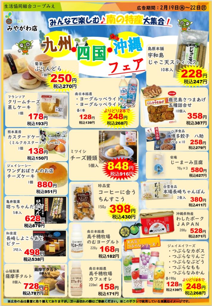 「九州・四国・沖縄フェア&お楽しみ市(21日㊏・22日㊐のみ)」開催!